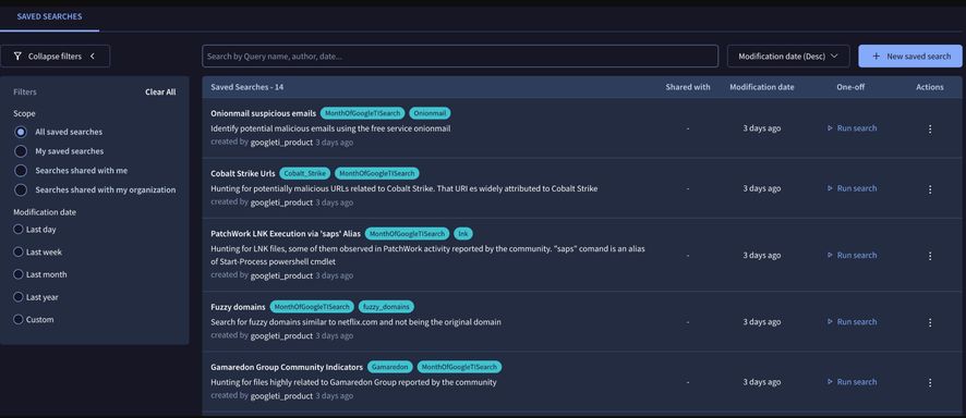 Introducing Saved Searches in Google Threat Intelligence (GTI) and VirusTotal (VT): Enhance Collaboration and Efficiency